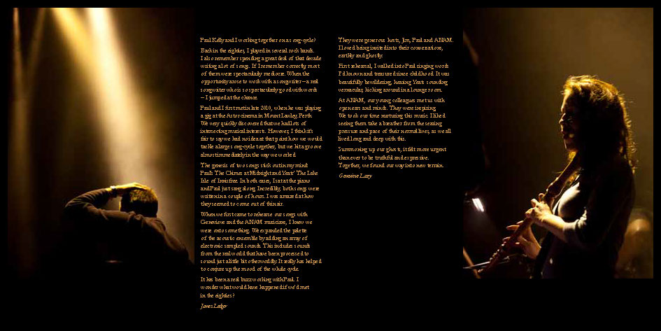 Conversations With Ghosts Conversations With Ghosts on SpotifyConversations With Ghosts on Apple Music The Lake Isle Of Innisfree Bound To Follow One Need Not Be A Chamber To Be Haunted Sailing To Byzantium Night Ride Five Bells Basking Shark Once In A Lifetime, Snow Woman To Man The Chimes At Midnight Ring Out, Wild Bells I’m Not Afraid Of The Dark Anymore