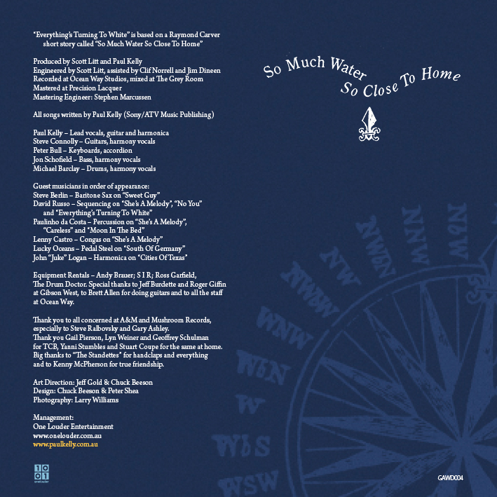 So Much Water So Close To Home So Much Water So Close To Home on SpotifySo Much Water So Close To Home on Apple MusicBuy So Much Water So Close To Home You Can’t Take It With You Sweet Guy Most Wanted Man In The World I Had Forgotten You She’s a Melody South of Germany Careless Moon In The Bed No You Everything’s Turning to White Pigeon/Jundamurra Cities of Texas