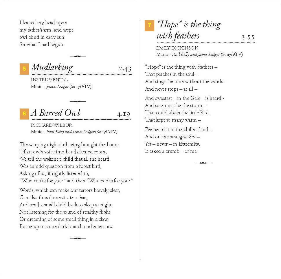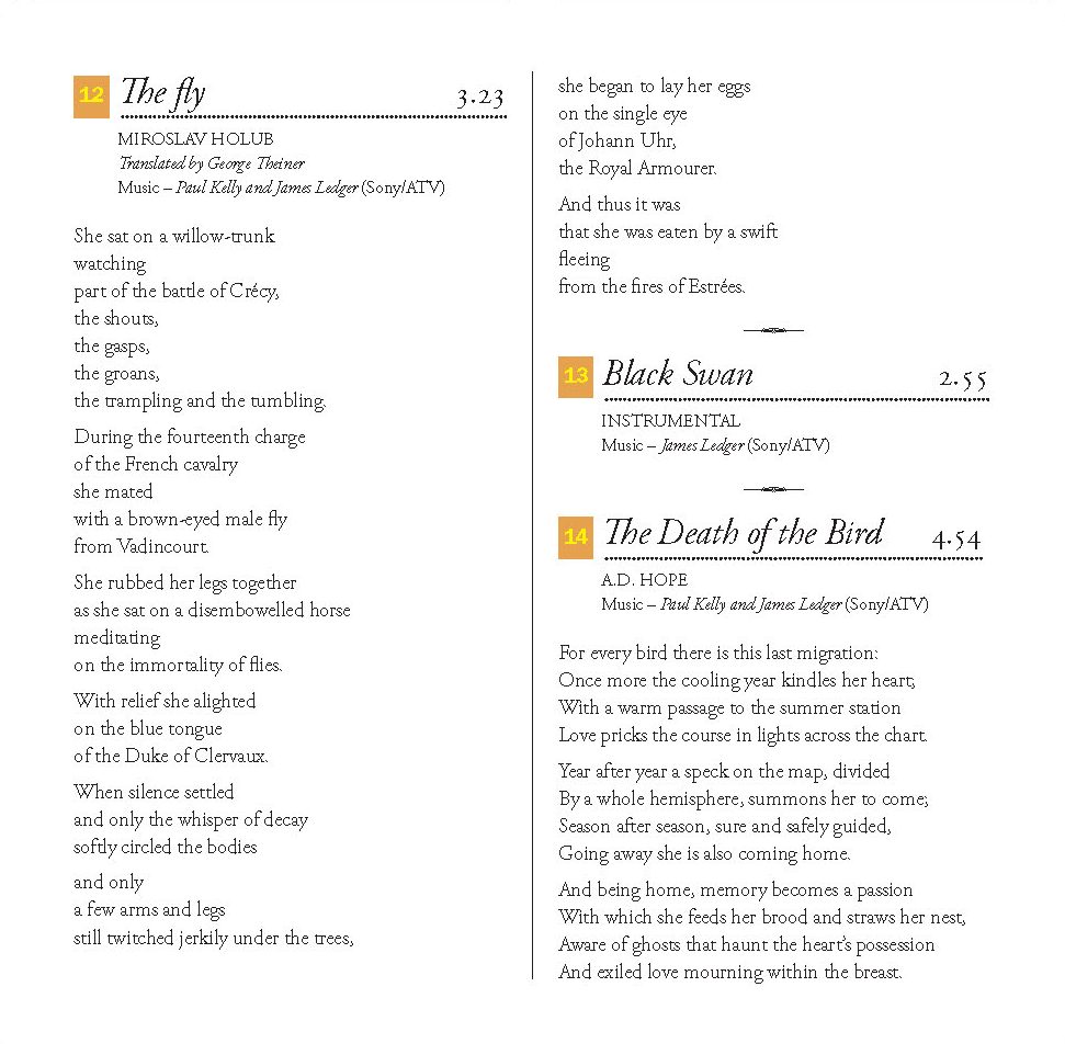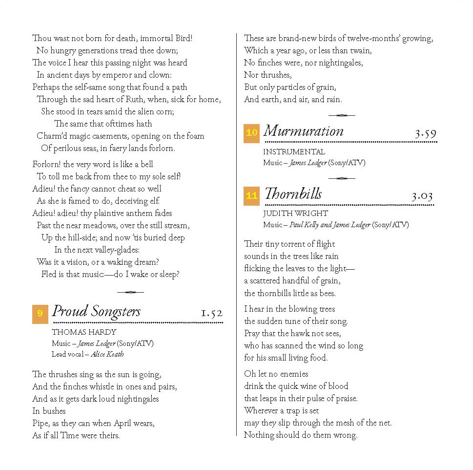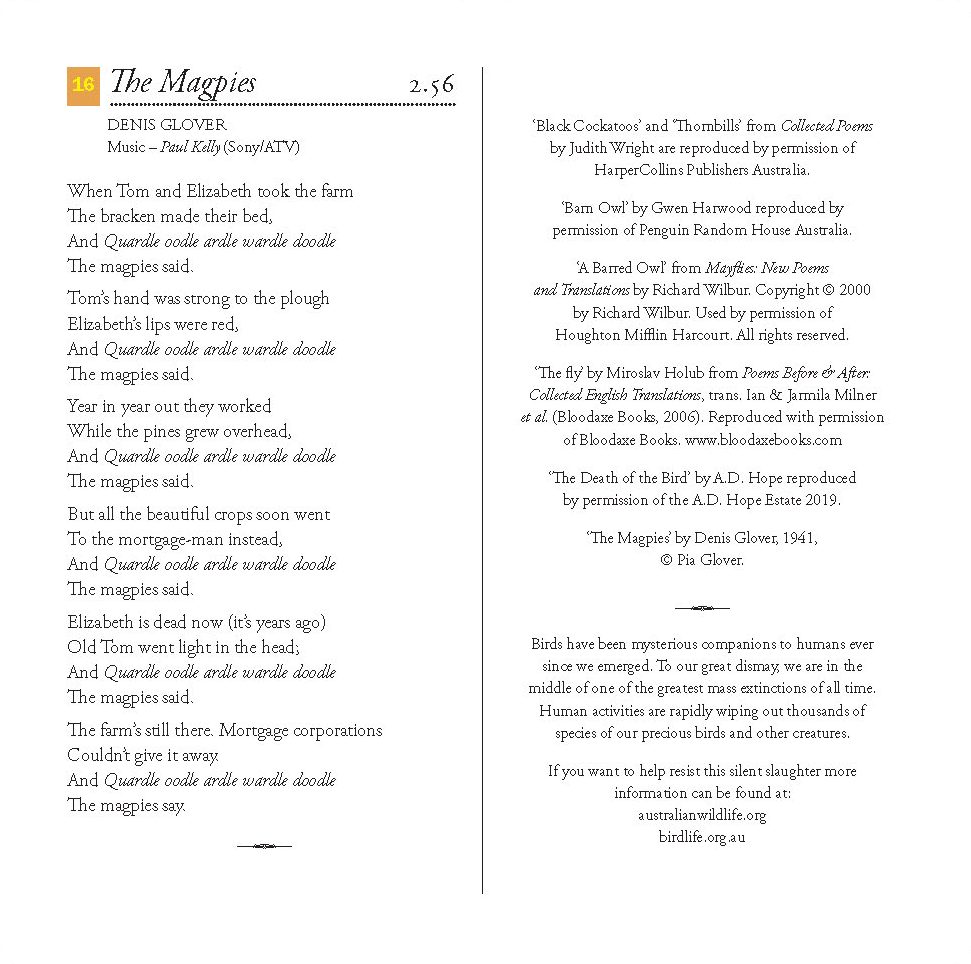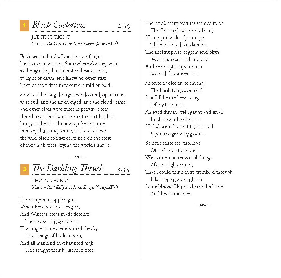 Thirteen Ways To Look At Birds Thirteen Ways To Look At Birds on SpotifyThirteen Ways To Look At Birds on Apple MusicBuy Thirteen Ways To Look At Birds Black Cockatoos The Darkling Thrush Leda and the Swan Barn Owl Mudlarking A Barred Owl “Hope” is the thing with feathers Ode to a Nightingale Proud Songsters Murmuration Thornbills The fly Black Swan The Death of the Bird The Windhover The Magpies