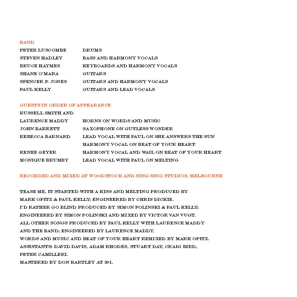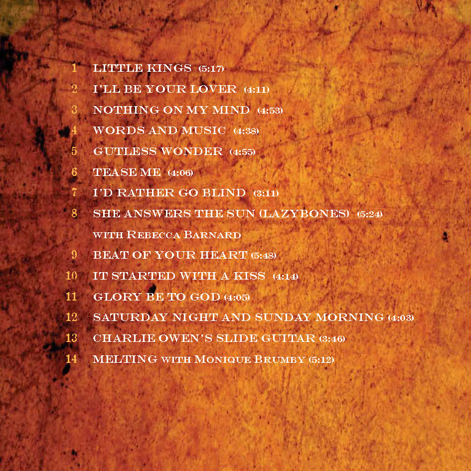 Words and Music Words and Music on SpotifyWords and Music on Apple MusicBuy Words and Music Little Kings I’ll Be Your Lover Nothing On My Mind Words And Music Gutless Wonder Tease Me I’d Rather Go Blind She Answers The Sun (Lazybones) Beat Of Your Heart It Started With A Kiss Glory Be To God Saturday Night And Sunday Morning Charlie Owen’s Slide Guitar Melting